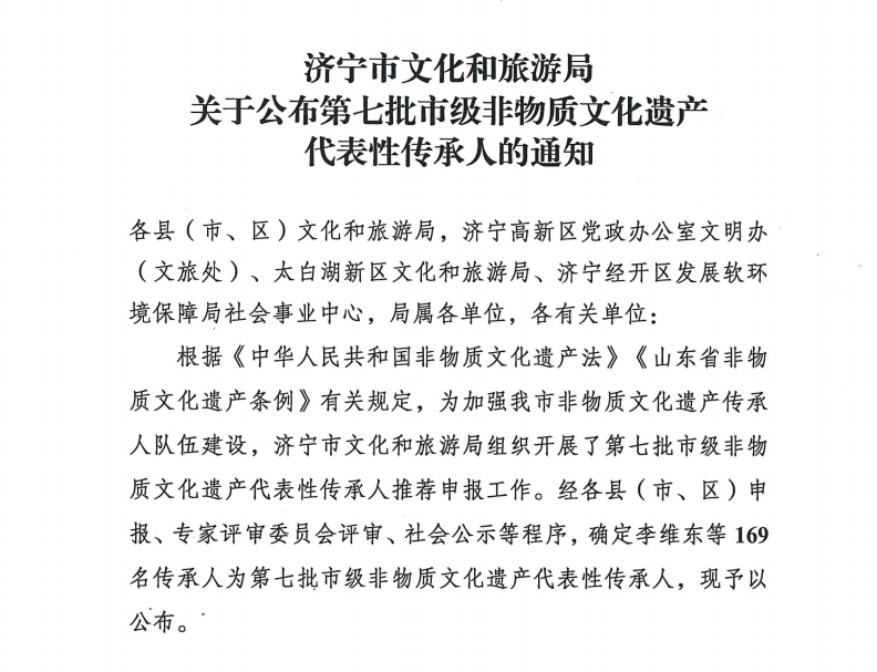 近日,济宁市公布第七批市级非物质文化遗产代表性传承人名单。我市多位非遗传承人凭借深厚的技艺积淀与突出的传承贡献成功入选,涵盖民间文学、传统体育、传统美术、传统技艺、传统医药、民俗等多个核心门类,充分彰显了孔子故里丰厚的文化底蕴和蓬勃的传承活力。