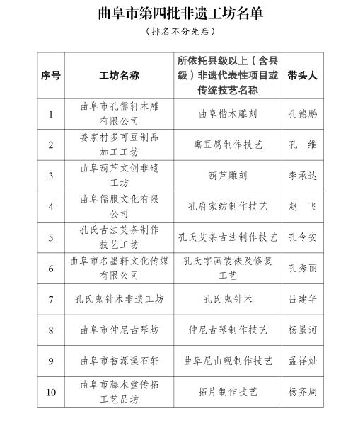 为深入贯彻非物质文化遗产系统性保护理念,进一步发挥非遗工坊在带动就业、促进增收、传承文化中的关键作用,曲阜市于近日正式公布第四批非物质文化遗产工坊名单。经严格评审,“曲阜市孔儒轩木雕有限公司”等10家单位被成功认定,标志着我市非遗助力乡村振兴工作迈入新的阶段。
