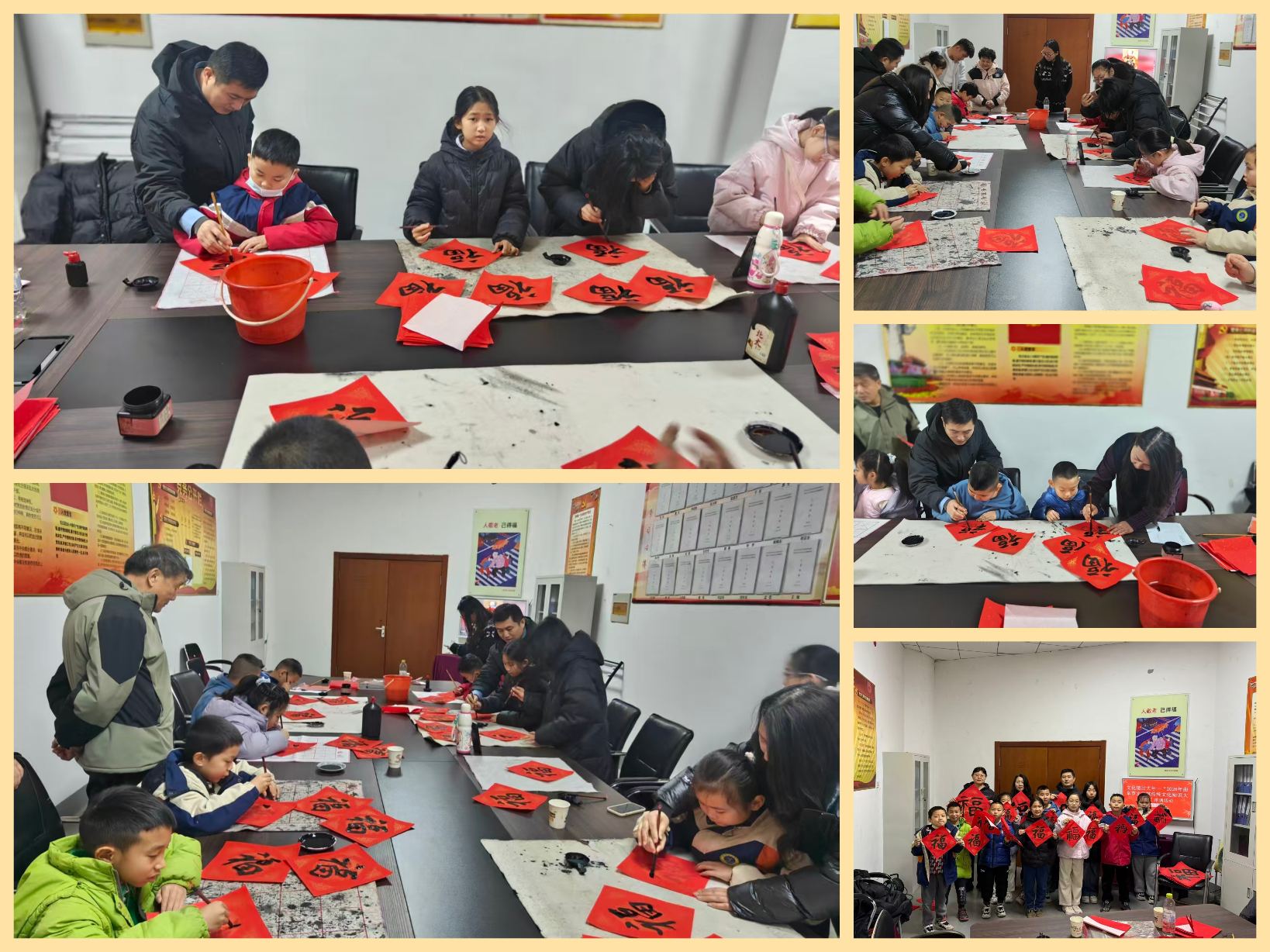 在福字书写实践培训环节,孩子们手持毛笔,蘸取朱砂墨汁,在红纸上认真落笔、反复练习,从握笔姿势到运笔力度,从笔画结构到整体布局,在培训老师的一对一指导下耐心打磨。一横一竖藏风骨,一撇一捺蕴初心,稚嫩的笔触在红纸上勾勒出一个个方正饱满、寓意吉祥的“福”字。