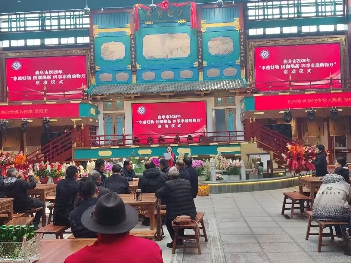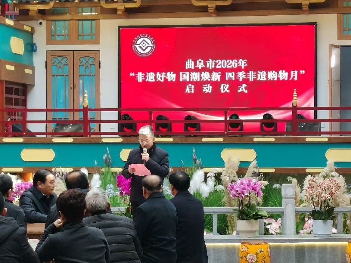 腊月年味浓,圣城非遗兴。2月12日,农历腊月二十五,曲阜市“非遗好物 国潮焕新 四季非遗购物月”启动仪式在蓼河古街·孔府宴秀隆重举行,标志着我市2026年春节非遗系列活动正式拉开帷幕。