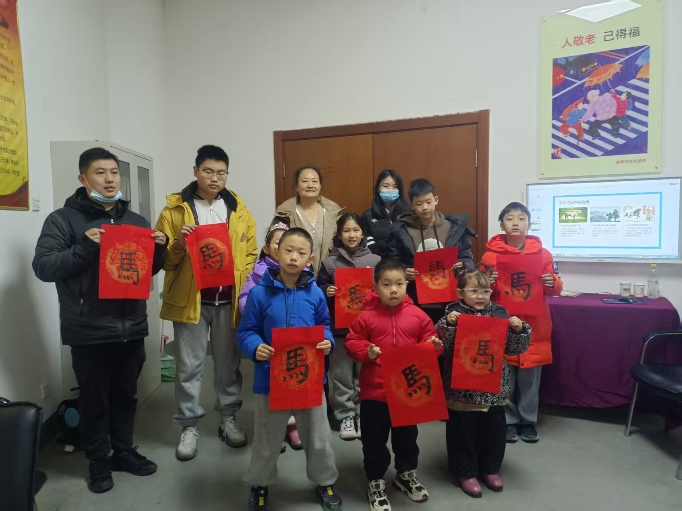 书法活动现场,墨香四溢,暖意融融。书法老师从“马”字的演变讲起,细致讲解了篆、隶、楷三种书体的写法。学员们凝神静气,挥毫泼墨,一张张红纸上,或端庄大气,或飘逸奔放的“马”字跃然眼前,不仅锻炼了书法技艺,更寄托了大家对新一年“龙马精神、马到成功”的美好憧憬。书法老师手把手教学,孩子们在一撇一捺间感受汉字的魅力,在浓淡干湿中体验书法的韵味。这不仅是一堂生动的书法课,更是一次沉浸式的文化体验,让每一位参与者都带走了一份独一无二的“曲阜年味”。