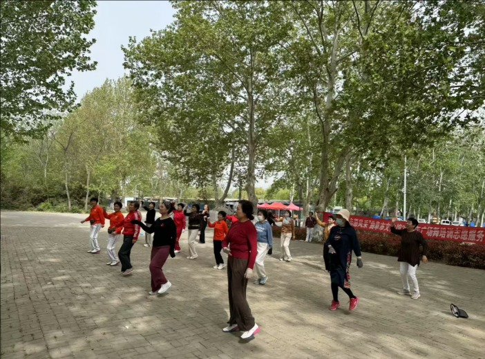 2025年4月18日,在圣华苑社区文化广场,曲阜市文化馆“舞动文化 志愿风采”2025年广场舞培训志愿服务活动(三)如诗般展开。此次以抒情柔美风格的《世界赠予我的》为教学曲目,突破传统教学模式,采用“情景化教学+即兴表达”方式,志愿者老师将舞蹈动作与音乐情感相融合,引导20余名居民在翩跹舞步中感悟美好。